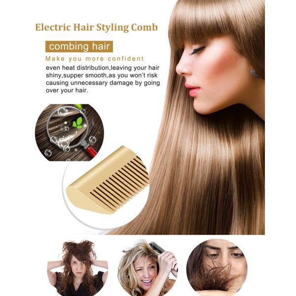 【CERAMIC HOT COMB】Electric pressing hot combs with ceramic technology, the high heat retention provides for even heat conditions hair making it shinier, silkier and frizz-free.